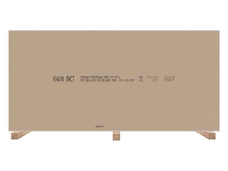 Гипсокартон Knauf 12.5x1200x2500 стандартный